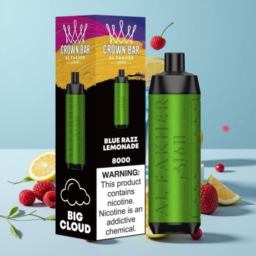 Al Fakher Crown Bar 8000 Crystal Disposable Vape 600mAh USB-C Синьо Малинов Лимонада